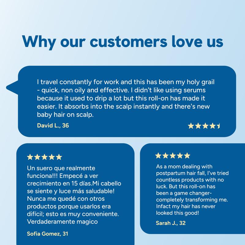 âThis is my second month using it, and I can already see the difference. I used to have a pretty wide part and could see my scalp in photos. Now, itâs definitely filling in. The best part? The roll-on is clean, quick, and doesnât leave any mess. Way better than sprays or oily serums. My wife even noticed new hairs near my crown last week.â